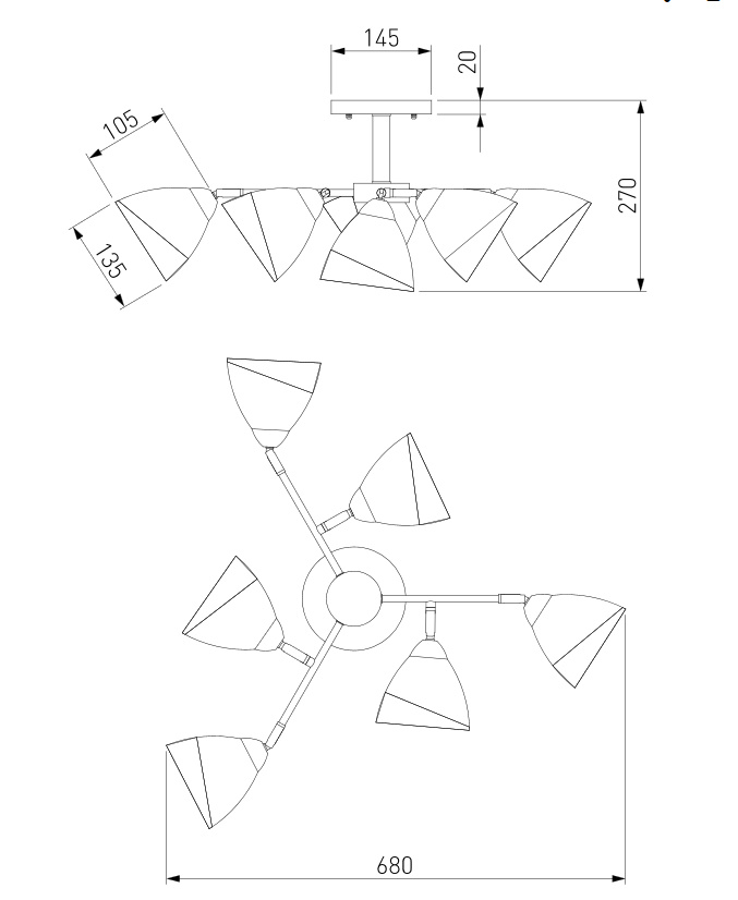Диаметр потолочной чаши 145 мм