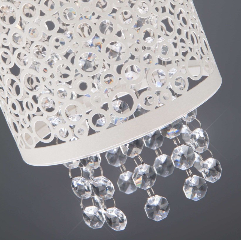 Подвесной светильник с хрусталем в цвете хром предназначен для создания дополнительного освещения и акцентной подсветки в современных интерьерах. Светильник со сменной лампой E14 создаст качественное освещение на площади 4 кв.м. и подсветит рабочие зоны на кухне, в гостиной, в спальне и других местах. Светильник с металлическим плафоном в белом цвете, украшенным декоративным хрусталем, оснащен системой регулировки высоты подвеса, позволяющей размещать изделие на разных уровнях, уменьшая или увеличивая угол рассеивания светового потока. Данный светильник легко устанавливается на потолке при помощи монтажной планки.