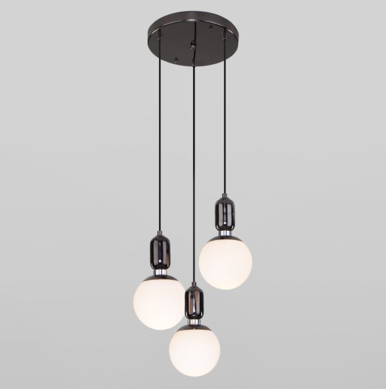 Подвесной светильник со стеклянными плафонами черный жемчуг предназначен для создания дополнительного освещения и акцентной подсветки в современных интерьерах. Светильник со сменной лампой E27 создаст качественное освещение на площади 6 кв.м. и подсветит рабочие зоны на кухне, в гостиной, в офисе и других местах. Данный светильник легко устанавливается на потолке при помощи монтажной планки.