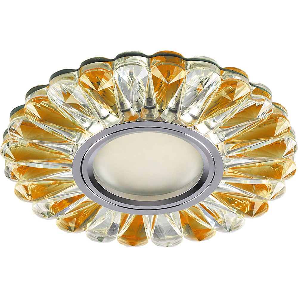 Светильник потолочный встраиваемый (ИВО) FERON CD901, под лампу с LED подсветкой 15LED*2835 SMD 4000K, MR16 G5.3, прозрачный-жёлтый хром, круг, 117*117*20 мм, монтажн.отв. 65 монтажный диаметр 60мм, корпус полимер, неповоротный