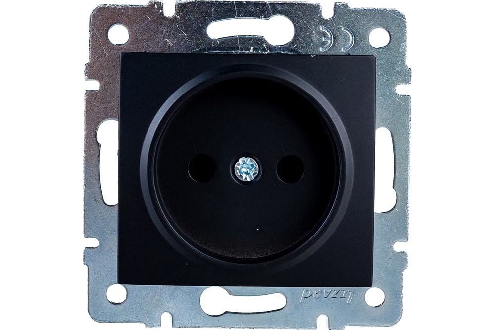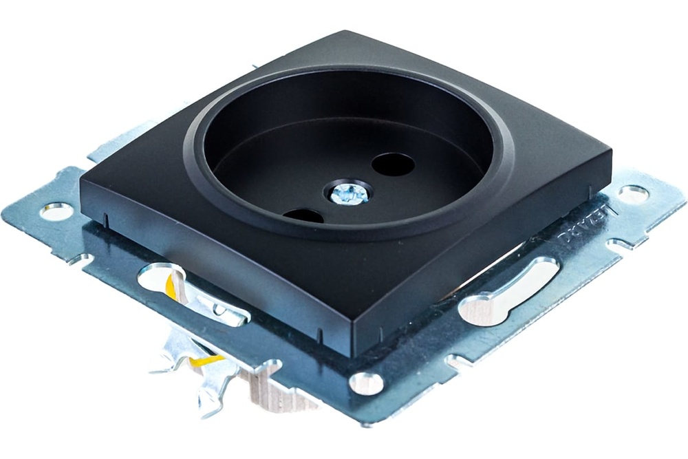Предназначена для подключения электроприборов к силовой электрической сети. Розетка без контактов заземления, ПБТ, черный бархат, скрытой установки, для жилых и нежилых помещений, где нет нулевого защитного провода.