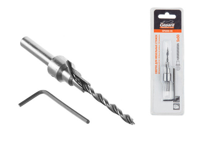 Сверло 5.0мм под конфирмат 7х50 мм GEPARD /GP0450-75/ для сверления отверстий под мебельную стяжку (конфирмат) за один проход в дереве, ДСП, ДВП. Обеспечивает зенкование под потайную шляпку.