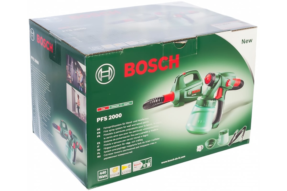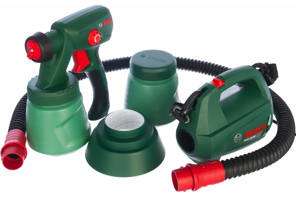 Краскораспылитель Bosch PFS 2000 0.603.207.300 предназначен для распыления дисперсионных и латексных красок, водорастворимых эмалевых красок с содержанием растворителей, глазурей, грунтовок, прозрачных лаков, масел и воды.
