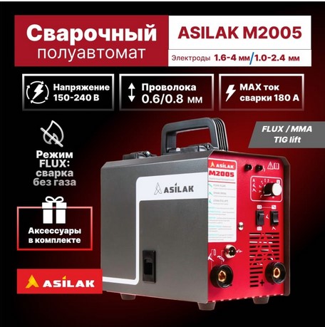 Сварочный полуавтомат имеет три режима: FLUX - сварка порошковой проволокой, MMA - сварка покрытыми электродами, TIG LIFT - аргонодуговая сварка (вентильная TIG-горелка приобретается дополнительно). Работает от нестабильной сети 150 В. Не требуется газ - варит порошковой самозащитной проволокой.