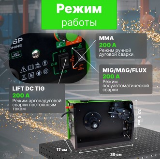 Сварочный полуавтомат DGM MIG-205P позволяет варить в четырех режимах: