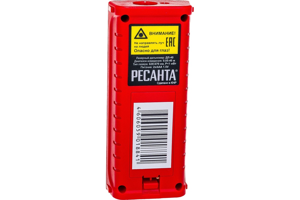 Лазерный дальномер РЕСАНТА ДЛ-40 используется для определения расстояний при сборке мебели, строительстве и ремонте. Заменяя традиционное оборудование для измерений, например, рулетку, дальномер позволяет получить более точный результат. На больших расстояниях точность прибора составляет несколько миллиметров. Возможна работа на открытом пространстве. В помещении с низким уровнем освещенности и чистым теплым воздухом прибор обеспечивает идеальную точность замеров. Кроме того, это незаменимый инструмент для работы в труднодоступных местах, таких как колодцы и шахты.