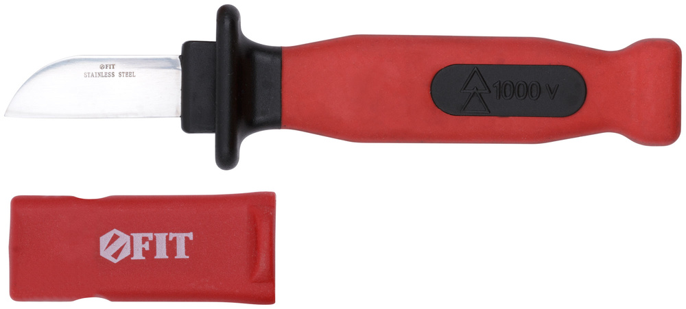 Изолированный нож FIT 1000 В, нерж.сталь, лезвие 50мм, прорезин.ручка 10605 служит для зачистки изоляционной оболочки проводов и кабелей. Изделие защищает пользователя от поражения электрическим током при выполнении работ на установках под напряжением до 1000В переменного тока и до 1500В - постоянного тока. Лезвие ножа изготовлено из нержавеющей стали, рукоятка выполнена из пластика и имеет обрезиненную поверхностность. Пластиковые ножны защищают лезвие при хранении и транспортировке.