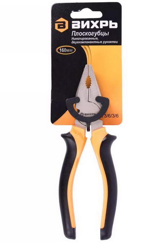 Плоскогубцы 160мм никелированные,двухкомпонентные рукоятки Вихрь 73/6/3/6 - простой инструмент, который пригодится слесарю, ремонтнику, монтажнику.