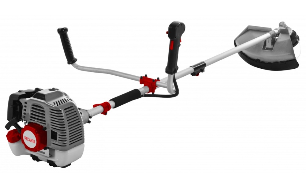 - Бензиновый триммер Ресанта обладает полной автономностью, можно работать где угодно без связи с источниками энергии.