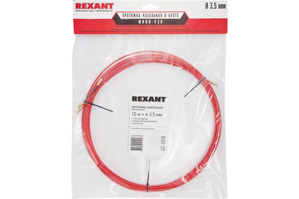 Кабельная протяжка (мини УЗК в бухте, стеклопруток, d=3,5 мм, 10м, красная) REXANT 47-1010 используется для упрощения протягивания кабелей в труднодоступных местах. Изделие выполнено из износостойкого ПНД. Яркий цвет протяжки облегчает ее обнаружение.