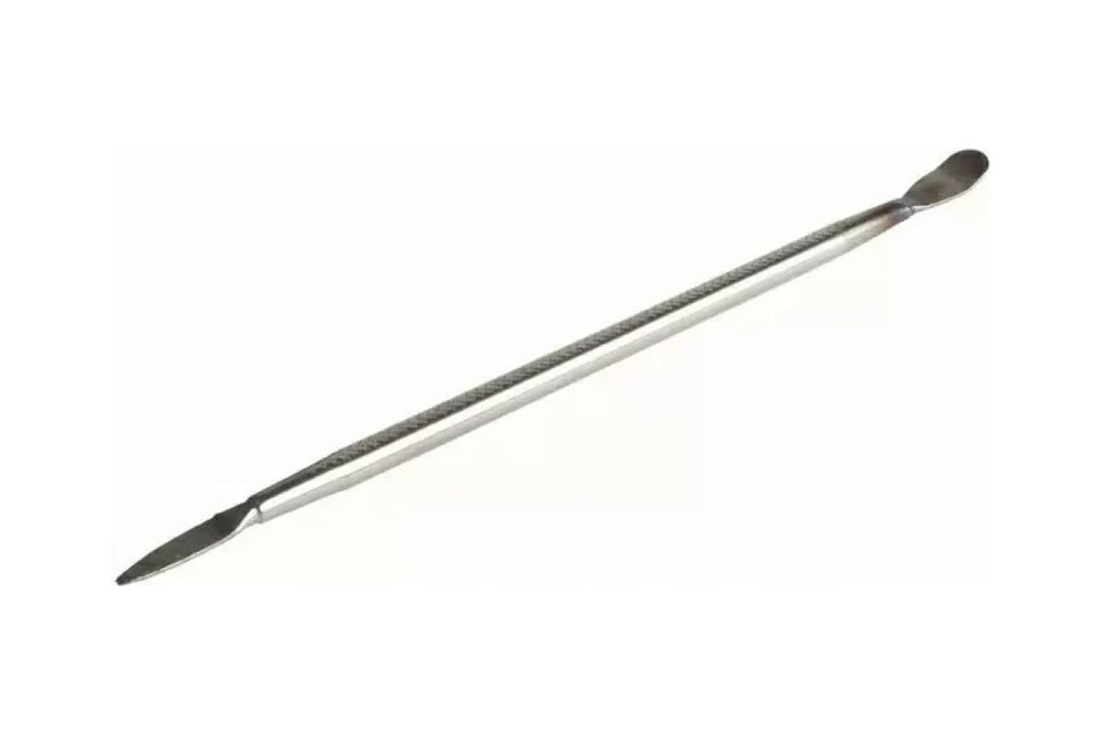 Металлический узкий спуджер 170мм REXANT 12-4335 изготовлен из высокоуглеродистой стали, что обеспечивает устойчивость к деформированию. Один конец представляет собой закругленную лопатку, а второй - заостренную. Центральная часть инструмента имеет рифление для предотвращения выскальзывания его из рук во время работы. Данная модель используется мастерами по ремонту мобильных телефонов, планшетов и прочей электроники для разборки корпусов.