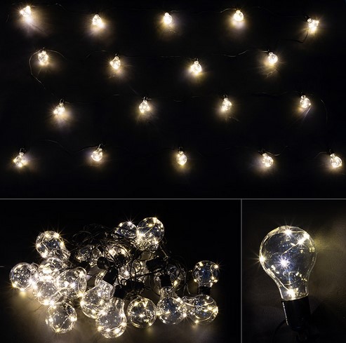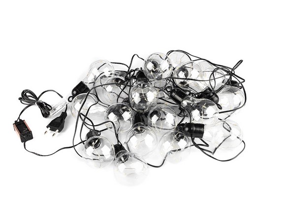 Электрогирлянда- ретро уличная «Лампочка» 20 орнаментов в виде ламп, 100 LED, 50cм между лампами, 9,5 м длина + 1,5 м шнур, уличная степень защиты IP44, черный провод