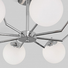 Организовать качественное освещение вам поможет эффектная потолочная люстра со стеклянными плафонами в цвете хром. Простые эргономичные формы и умеренные тона станут прекрасным дополнением для вашего интерьера. Люстра украсит потолок вашей спальни и создаст полноценное освещение на площади 16 м². В люстре рекомендуется использовать сменные лампы накаливания с цоколем Е27 с максимальной мощностью 60 Вт. В производстве люстры использовали высококачественный металл с надежным защитным покрытием и закаленное стекло.
