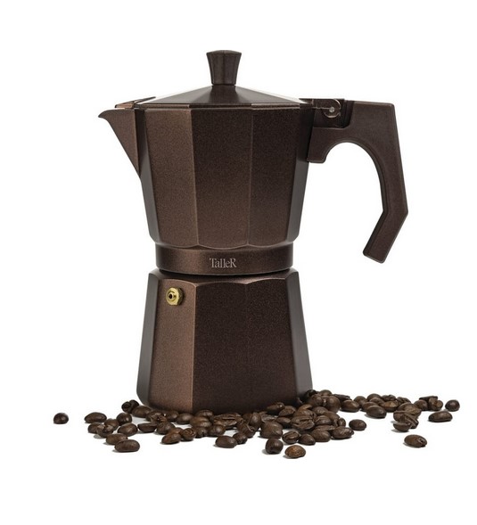Гейзерная кофеварка TALLER 300 мл, черный + коричневый TR-11322 - это простой, надежный и быстрый способ сварить кофе. Корпус выполнен из высококачественного алюминия марки 3003 с жаростойким покрытием, за счет чего кофеварка устойчива к износу. Ручка выполнена из нейлона с нескользящим покрытием, благодаря чему удобно лежит в руке. Подходит для всех типов плит, поэтому универсальна в использовании.