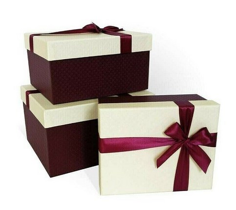 Коробка подарочная с бантом тисненая бумага РОМБ-крупный 210x170x110 слоновая кость-бордо (прямоугольник, 210х170х110, ромб крупный , слоновая кость, ромб крупный, бордо, лента бордо, 6)