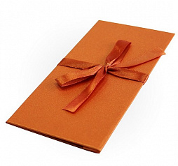 Подарочный конверт ДЛЯ ДЕНЕГ,тиснение МИКРОВЕЛЬВЕТ, с бантом,172х83,оранжевый (прямоугольник, 172x83, микро вельвет, оранжевый, лента медь, 48)