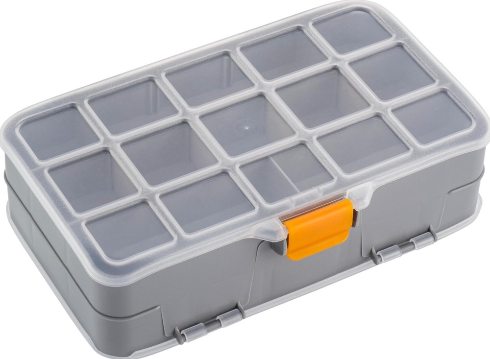 Органайзер для мелочей помогает содержать в порядке, переносить на место выполнения работ и быстро находить метизы и аксессуары. Идеален для использования дома, на даче, в гараже, мастерской, в автомобиле. Внутреннее деление на отсеки делает удобным размещение внутри органайзера деталей, которые необходимо отделить друг от друга. Съёмные перегородки позволяют изменять размер отсеков под личные нужды. Прозрачная крышка позволяет увидеть содержимое, не открывая органайзер. Имеется петля для подвеса. Благодаря плотно прилегающей крышке, исключающей смешивание содержимого, органайзер подходит для хранения самых мелких деталей, в том числе для рыболовных и швейных принадлежностей, коллекционирования, занятия хобби.