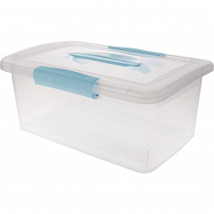 Универсальный ящик для хранения с крышкой,эргономичными ручками-защелками и дополнительной центральной ручкой-переноской синего цвета. Прозрачный корпус позволяет видеть содержимое ящика. Прочный каркас позволит хранить любого вида предметы: от одежды и обуви до детских игрушек.