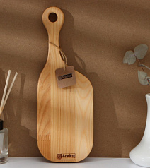 Разделочная доска береза обладает необходимой упругостью при нарезании крошащихся, мокрых, твёрдых и тягучих продуктов. Выполнена из натуральной гипоаллергенной и гигиеничной древесины.