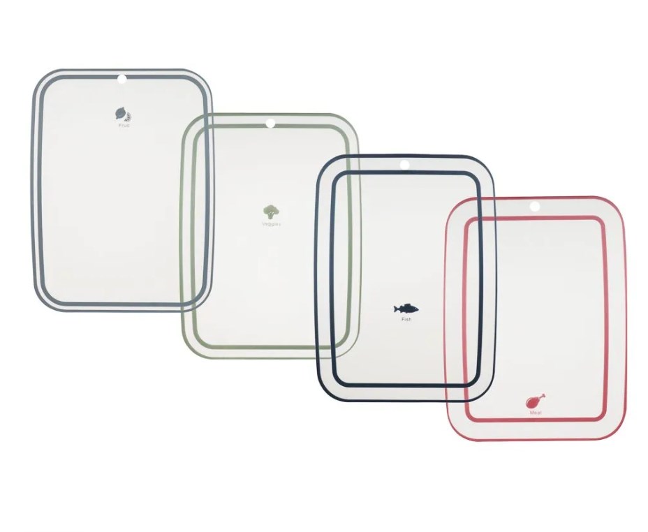 Набор из 4 разделочных гибких досок из коллекции «Ривьера» от SATOSHI — универсальный помощник на кухне, который «подставит вам плечо» в нужный момент. Нарезка фруктов, шинкование овощей, разделка рыбы и птицы — на прямоугольной пластиковой разделочной доске легко выполняются любые кулинарные задания.