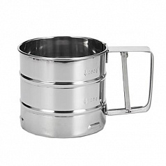 Кружка-сито - ёмкость для просеивания муки, сахарной пудры, манки, какао и других мелких сыпучих продуктов. Кружка состоит из корпуса с двойным ситовым дном и ручки, внутри которой находится пружина. Благодаря ручке-рычагу вы с легкостью просеете муку без лишней тряски и распыления муки. Просто насыпаете муку в чашку, нажимаете на рычаг, и мука сыпется в ёмкость. Имеет яркий интересный дизайн.
