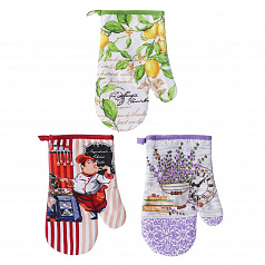 Прихватка-варежка PROVANCE Ассорти - незаменимый помощник на любой кухне. Изделие выполнено натурального материала и оформлено красочным принтом. Прихватка мягкая, удобная и практичная. Она защитит ваши руки и предотвратит появление ожогов. Оригинальный дизайн позволит красиво дополнить интерьер кухни. С помощью текстильной петельки прихватку можно подвесить на крючок.