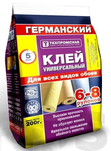 Обойный клей Германский универсальный, 200 грамм, пакет ПРОМО (6-7рул)