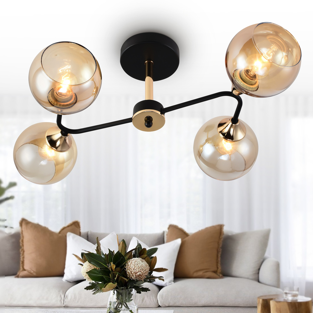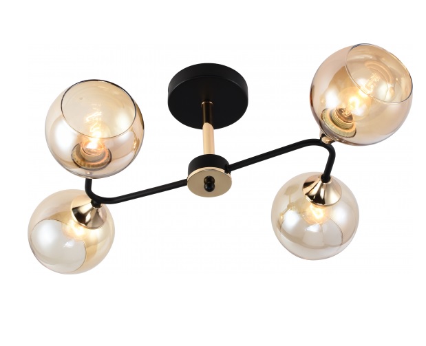Люстры на невысокий или средний потолок Rivoli Alison от итальянских дизайнеров. Люстры выполнены в модном сочетании черного и золотого цветов. Изготовлены из качественных материалов - металл со стойким гальваническим покрытием, закаленное стекло с мягкой золотистой тонировкой. Люстры потолочные Alison Rivoli имеют 4 плафона под распространенные лампы Е27 60 Вт. Люстры на кухню Alison устойчивы к воздействию окружающей среды, прослужат долго, не потеряют красоту сквозь годы и переезды. Заказать люстры в гостиную Rivoli Alison - практичная и выгодная покупка.