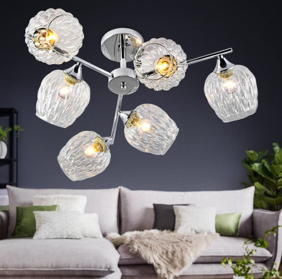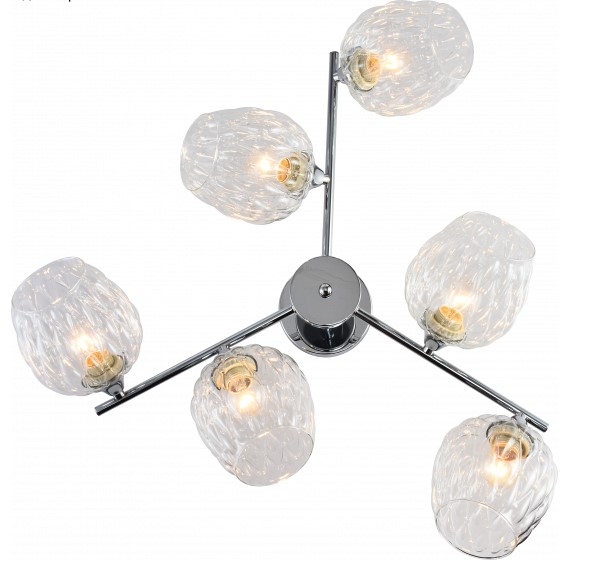Люстры потолочные Rivoli Arlene - это сочетание трендовой хромированной арматуры и прозрачного дизайнерского стекла. Люстры в гостиную Arlene с 6 узорчатыми стеклянными плафонами великолепно пропускают свет, освещая площадь 18 м2. Арматура люстры отличается лаконичностью форм. Стойкое гальваническое покрытие люстры модного оттенка хром делает Arlene Rivoli удачным заказом для современных интерьеров и хорошим вариантом люстры на кухню. Такие люстры прослужат долго, радуя своей красотой и отлично дополняя пространство практически любого стиля.