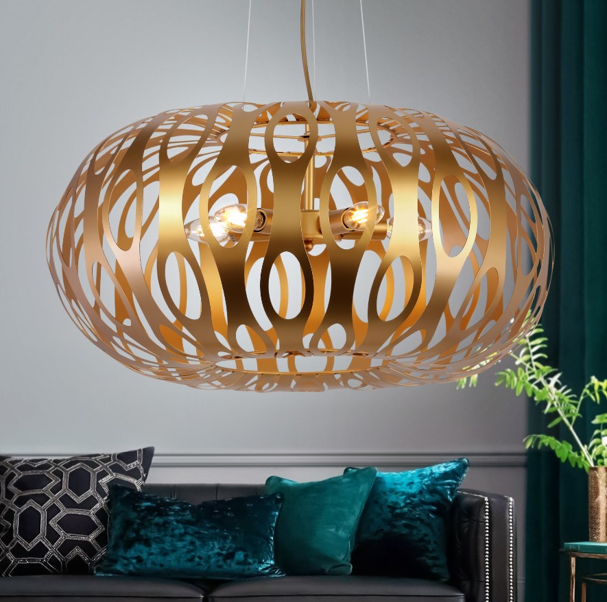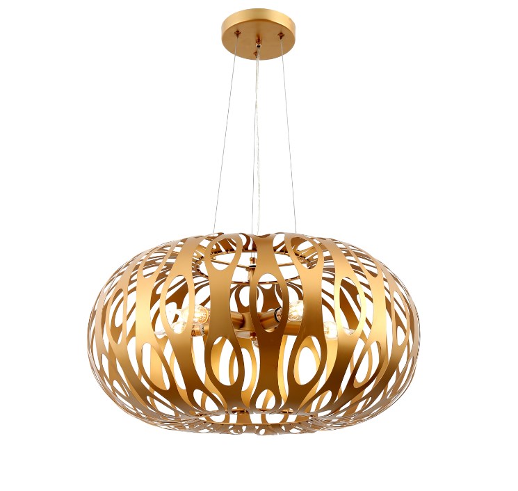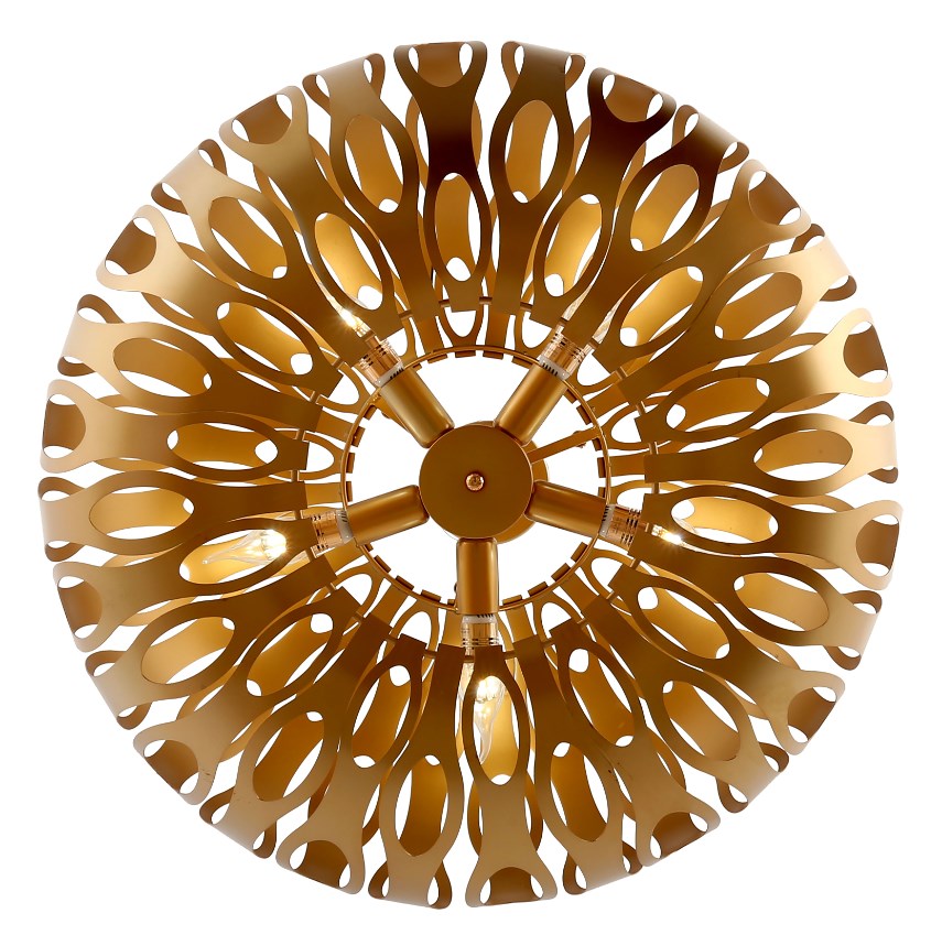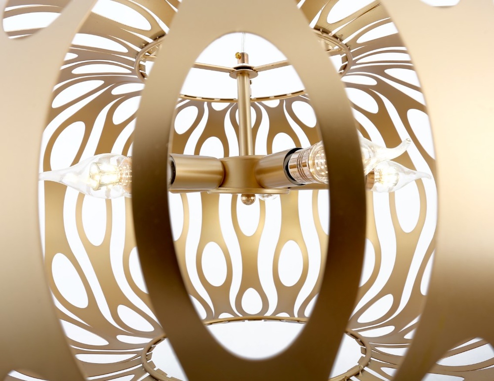 Со светильниками Rivoli Mitzi комната будет наполнена воздухом, светом и стилем. Благодаря уникальному методу высокоточной лазерной резки, создателям этой серии удалось добиться невесомости металла и особой плавности линий узора. Благородный золотой цвет абажура с перламутровым напылением это солнце, навсегда поселившееся в вашем доме! Коллекция представлена подвесной люстрой на 5 ламп.