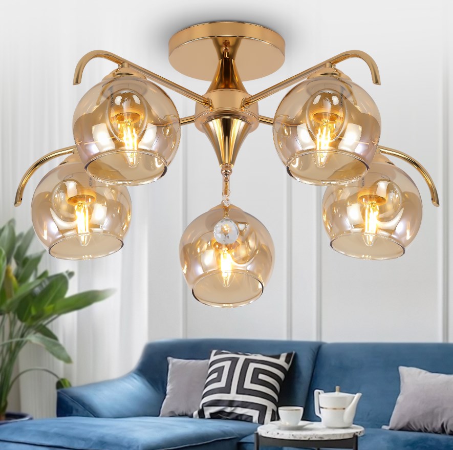 Универсальная люстра на потолок Oda от итальянского бренда Rivoli сочетает в себе красоту и практичность. Пять выдувных плафонов этой дизайнерской люстры тонированы дымчато-золотистым оттенком. Минималистичная арматура окрашена в яркий золотой цвет. Коллекция современных люстр Rivoli Oda укомплектована моделями на 3 и 5 плафонов для качественного освещения помещений разной площади.