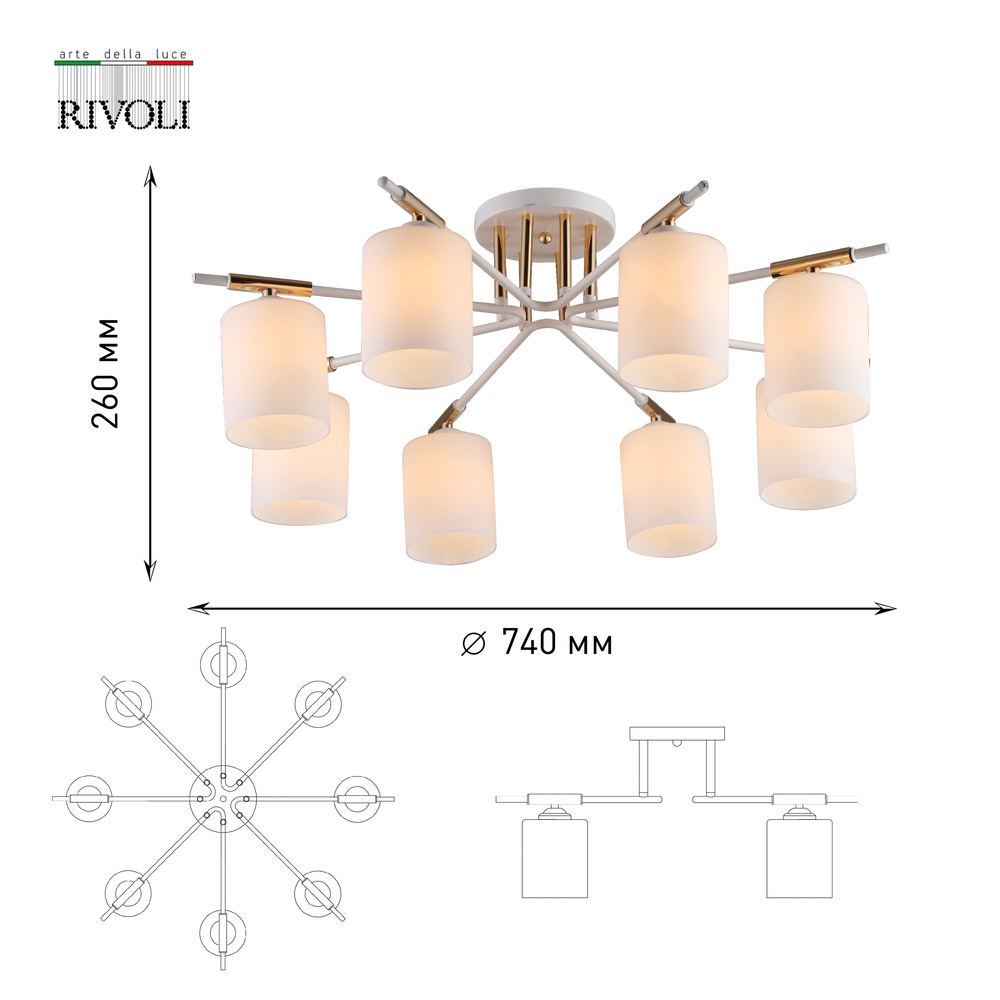 Коллекция Rivoli Amanda включает в себя люстры потолочные с 4, 6 и 8 плафонами. Эти аккуратные универсальные люстры созданы итальянскими дизайнерами в популярном стиле модерн. Люстры Amanda очень легко смотрятся на потолке, их светлые теплые оттенки создают благоприятную атмосферу в доме. Плафоны изготовлены из качественного декоративного стекла с матовым покрытием. Они прекрасно рассеивают свет, исключают блики. Вы получаете комфортное для глаз освещение, в комнате с искусственным светом будет приятно находиться даже длительное время.