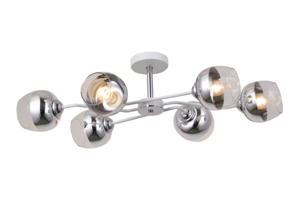 Потолочная люстра коллекции ''Club''. Выполнена из высококачественных материалов и комплектующих. Арматура белого цвета, плафоны - стекло. Люстра состоит из шести рожков с цоколем Е27. Без ПДУ. Стиль модерн. Имеет возможность использования любых ламп с цоколем Е27 мощностью до 60 Ватт. Люстра проста в монтаже. Прекрасно подойдет для основного местного освещения в гостиных, спальнях и студиях.