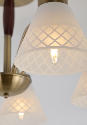 5-рожковая люстра с равномерным расположением ламп по кругу традиционный вариант для гостиной, спальни, столовой, кухни, загородного дома, квартиры-студии. Устанавливайте в Rivoli Meta лампы с самым распространенным цоколем Е27. Мощность по 40 Вт. Подходят как обычные лампочки, так и светодиодные источники света.