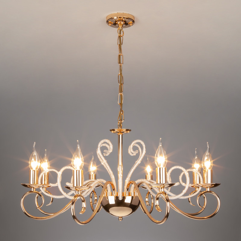 Восхитительная модель 60090/8 золото от российской компании Eurosvet относится к коллекции Silva и отлично подойдет для установки на потолок в гостиной, оформленной в стиле модерн. Подвесная люстра Eurosvet Silva 60090/8 золото без плафонов осветит помещение площадью 38 кв. м. Производитель Eurosvet рекомендует использовать для устройства лампы накаливания с цоколем E14 и мощностью 60 W. Прибор произведен с использованием материала: металл и может использоваться для натяжного потолка. Основным цветом товара является золотой.