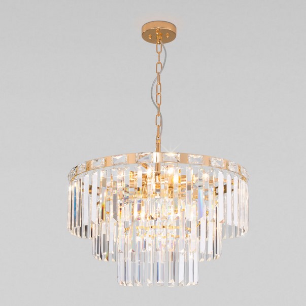 Подвесная люстра каскадная Elegante 10130/8 золото от фабрики Eurosvet подходит для размещения в гостиной, в кафе, в спальне, на кухне, над обеденным столом, в магазине, в классическом стиле. Материал изготовления – металл, цвет прозрачный. Модель имеет 1 плафон (хрусталь). Цоколь 8xE14. Освещаемая площадь до 14 кв. м. Мощность 480 W, питание от сети 220 V, cтепень защиты от влаги и пыли IP20, I класс электробезопасности. Габариты: длина – 57 см, ширина – 57 см, высота – 78 см, крепление на монтажную пластину.
