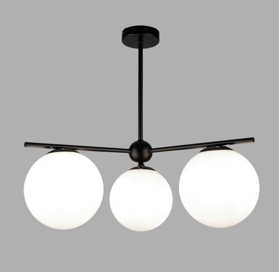Организовать качественное освещение вам поможет эффектная потолочная люстра со стеклянными тремя белыми плафонами . Простые минималистичные формы и сдержанные тона станут прекрасным дополнением для вашего интерьера. Люстра украсит потолок вашей квартиры и создаст полноценное освещение на площади 5 м². В светильнике рекомендуется использовать сменные лампы накаливания с цоколем Е14 с максимальной мощностью 40 Вт. В производстве светильника использовали высококачественный металл с надежным защитным покрытием и закаленное стекло.