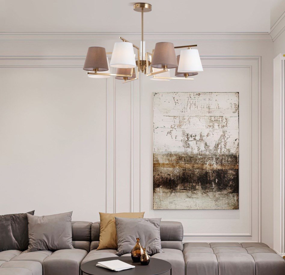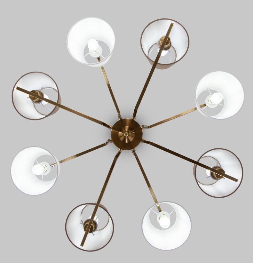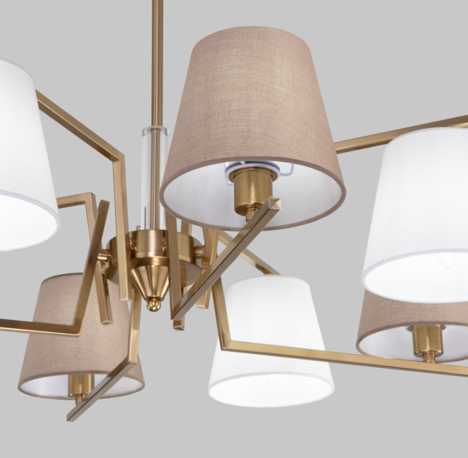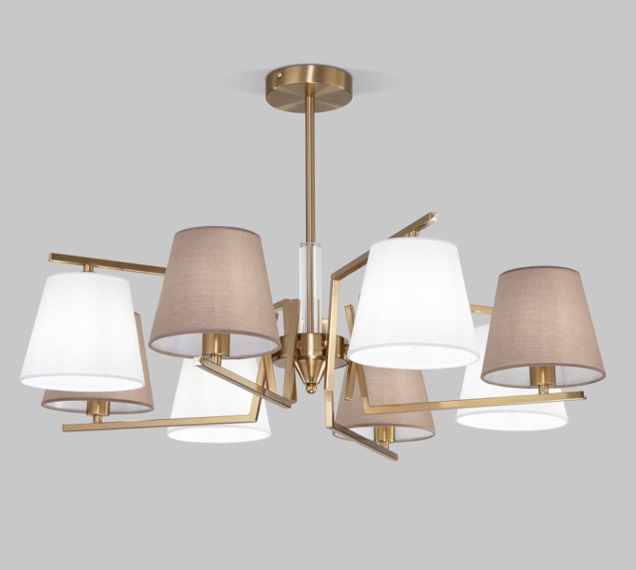 Организовать качественное освещение вам поможет классическая потолочная люстра с тканевыми абажурами 8 штук в белом и бежевом цвете. Простые минималистичные формы и сдержанные тона станут прекрасным дополнением для вашего интерьера. Люстра украсит потолок вашей комнате и создаст полноценное освещение на площади 14 м². В люстре рекомендуется использовать сменные лампы накаливания с цоколем Е14 с максимальной мощностью 40 Вт. В производстве люстры использовали высококачественный металл с надежным защитным покрытием и тканевыми абажурами.