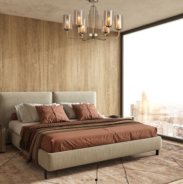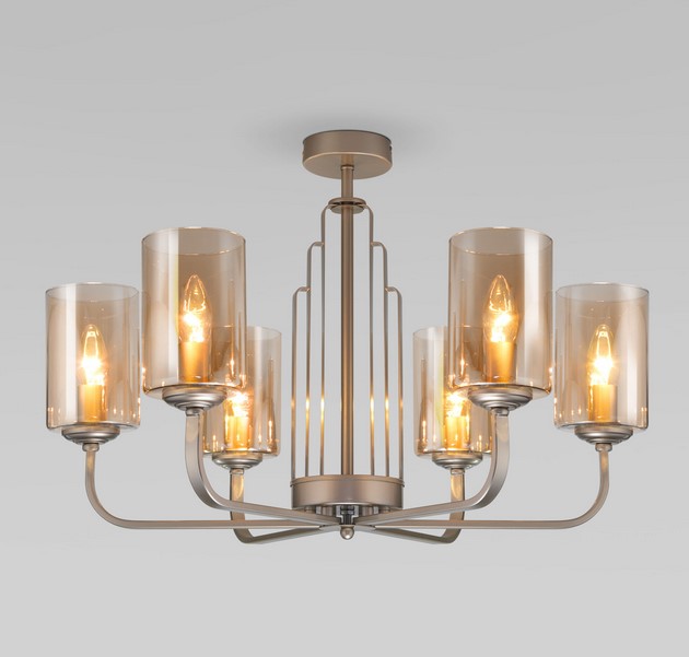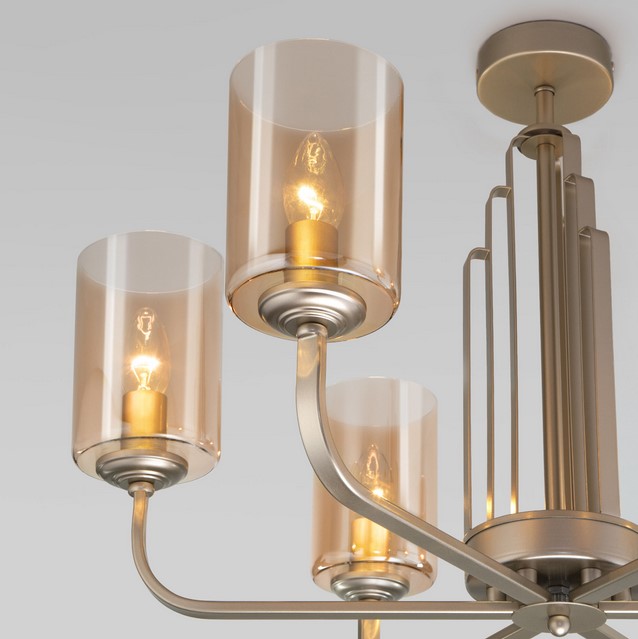 Подвесная люстра с 6 рожками в цвете перламутровое золото, предназначена для создания основного освещения в современных и классических интерьерах, подходит для различных типов помещений: гостиная, спальня и рассчитана на площадь освещения 10 м².