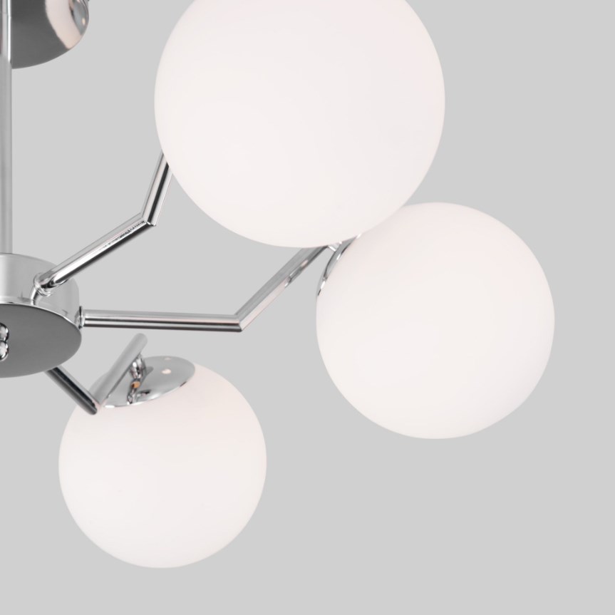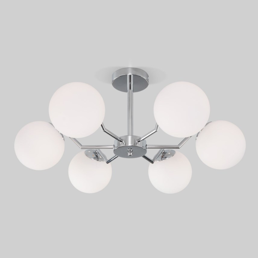 Организовать качественное освещение вам поможет классическая потолочная люстра со стеклянными плафонами в цвете хром. Простые минималистичные формы и сдержанные тона станут прекрасным дополнением для вашего помещения. Люстра украсит потолок вашей гостиной и создаст полноценное освещение на площади 12 м². В люстре рекомендуется использовать сменные лампы накаливания с цоколем Е27 с максимальной мощностью 60 Вт. В производстве люстры использовали высококачественный металл с надежным защитным покрытием и закаленное стекло.