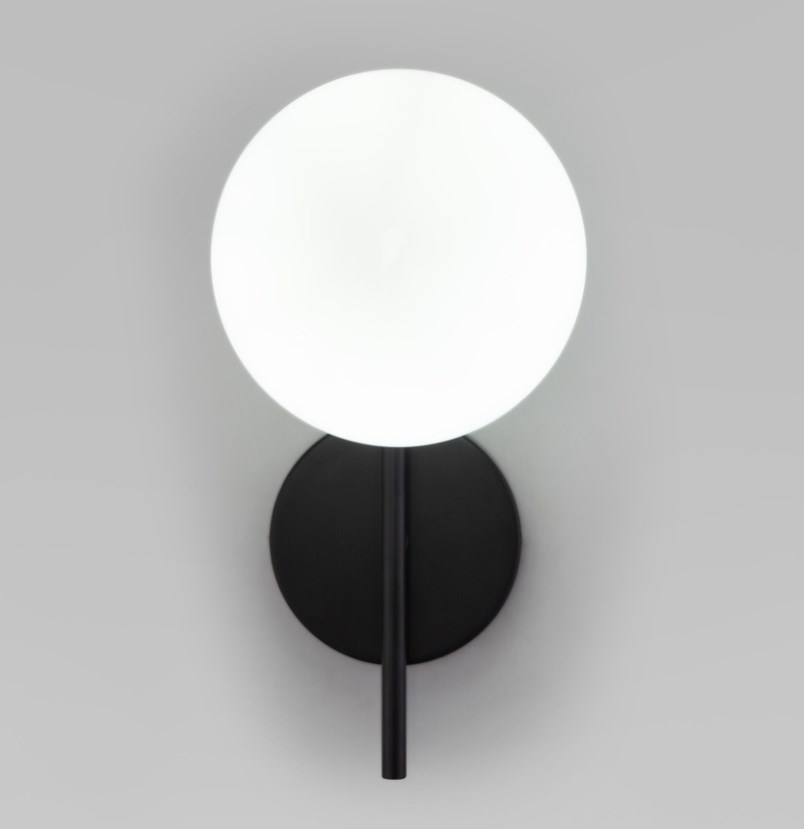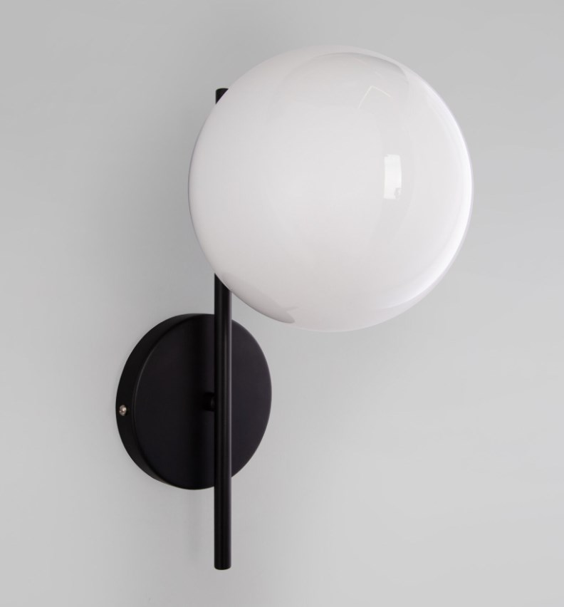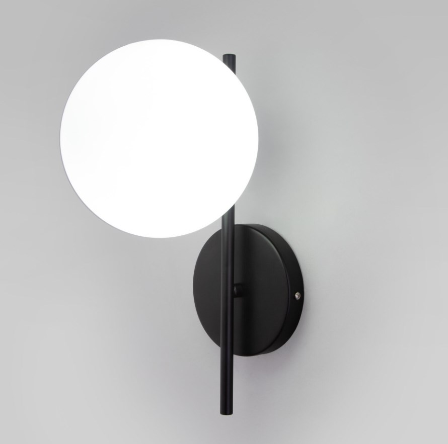 Настенный светильник в современном стиле черный создаст качественное дополнительное освещение и станет эффектным дополнением к основному источнику света. Благодаря стеклянному плафону бра создает мягкое рассеянное свечение, подходящее для комфортного чтения книг в вечернее время. В качестве источника света используются сменные лампы типа "Свеча" или "Шар" с цоколем E14. Патрон рассчитан на максимальную мощность ламп накаливания 40 Вт. Корпус светильника выполнен из высококачественного и прочного металла с надежным покрытием. Бра легко монтируется при помощи крепежной планки, которая обеспечивает надежную фиксацию светильника на стене.
