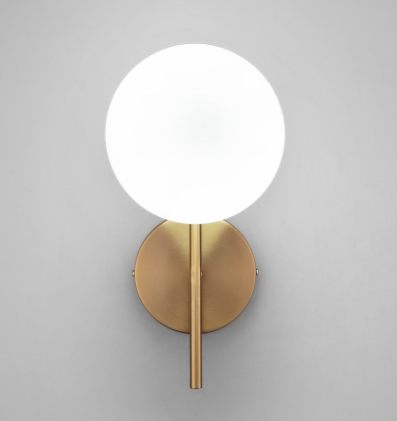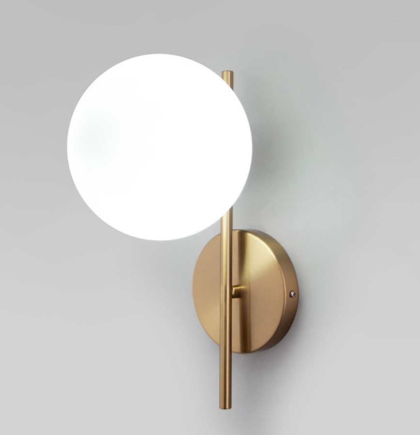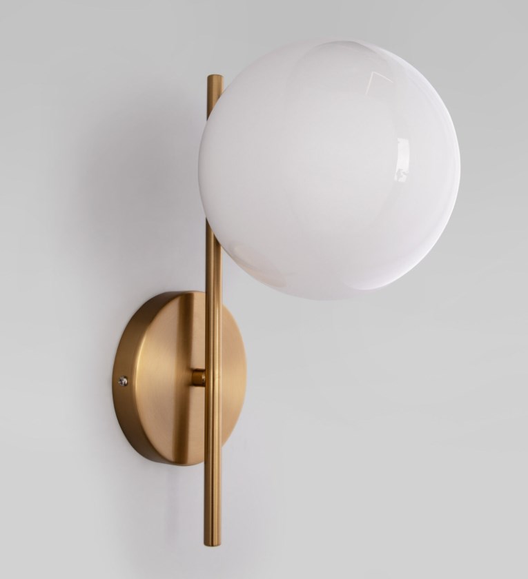 Настенный светильник в современном стиле латунь создаст качественное дополнительное освещение и станет эффектным дополнением к основному источнику света. Благодаря стеклянному плафону бра создает мягкое рассеянное свечение, подходящее для комфортного чтения книг в вечернее время. В качестве источника света используются сменные лампы типа "Свеча" или "Шар" с цоколем E14. Патрон рассчитан на максимальную мощность ламп накаливания 40 Вт. Корпус светильника выполнен из высококачественного и прочного металла с надежным покрытием. Бра легко монтируется при помощи крепежной планки, которая обеспечивает надежную фиксацию светильника на стене.