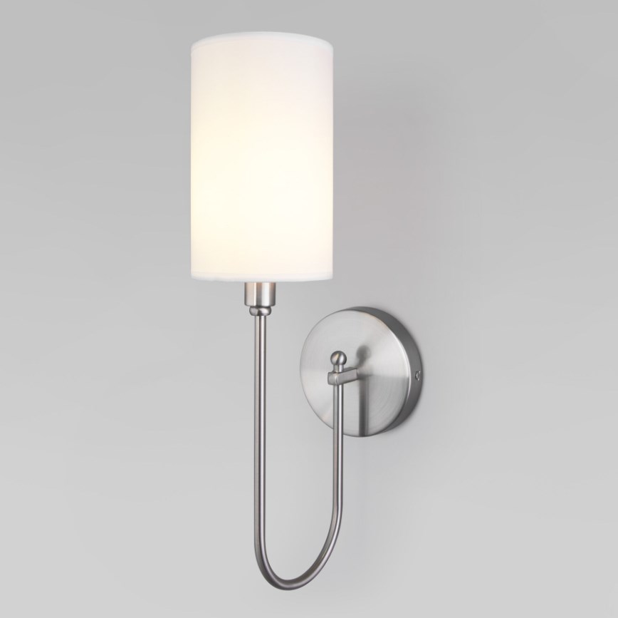 Настенный светильник с плафоном никель создаст качественное дополнительное освещение и станет ярким дополнением к основному источнику света. Благодаря белому тканевому плафону бра создает мягкое рассеянное свечение, подходящее для комфортного чтения книг в вечернее время. В качестве источника света используются сменные лампы типа "Свеча" или "Шар" с цоколем E14. Патрон рассчитан на максимальную мощность ламп накаливания 40 Вт.