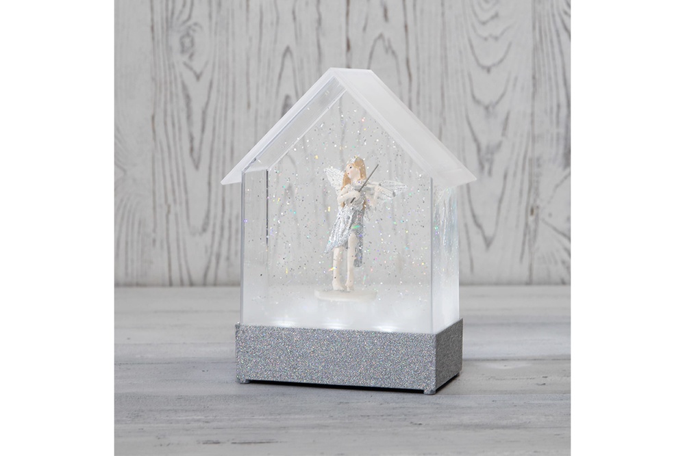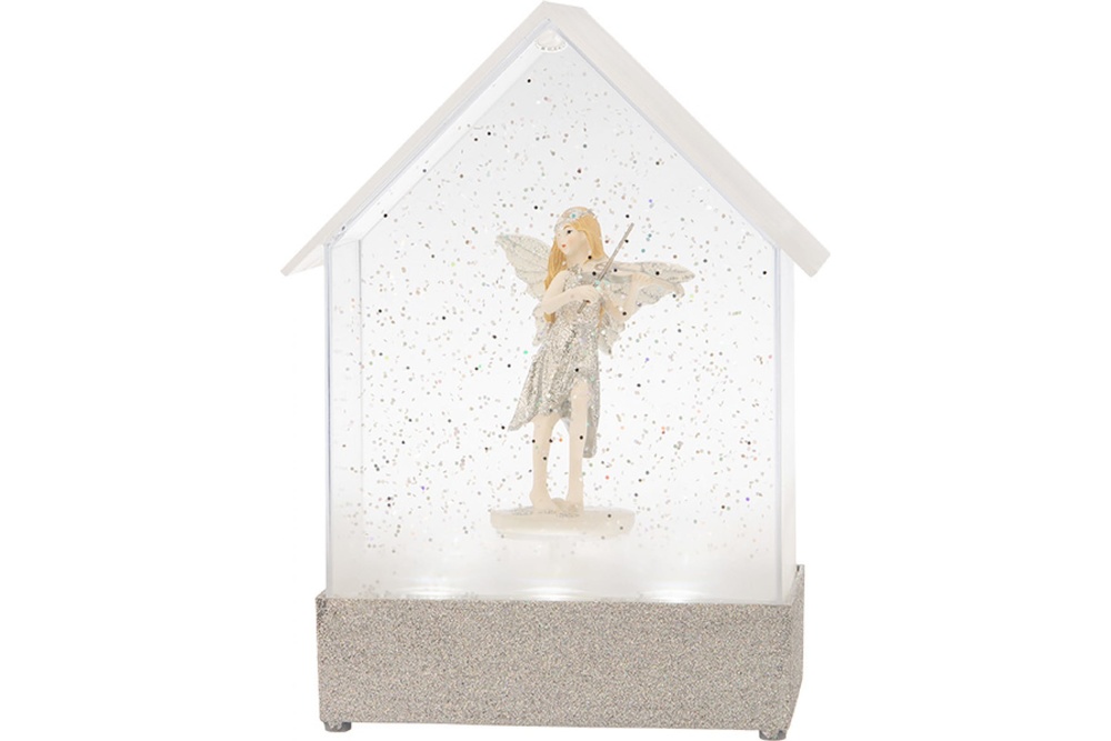 Декоративный светильник-ночник "Фея" размером 15х9х20 см обладает белым свечением и приятной мелодией. Изделие с фигуркой феи, которая подсвечивается 6 долговечными диодами, придаст уют и привнесет в интерьер тепло, свет и комфорт, а также станет отличным украшением детской, фотостудии или подарком на день рождения. Фонарь наполнен специальной жидкостью и блестящим конфетти, которые при включении начинают циркулировать, создавая атмосферу праздника и уюта. Декоративное украшение имеет автоматический эффект снегопада, так как оснащено встроенным моторчиком: трясти светильник не нужно.