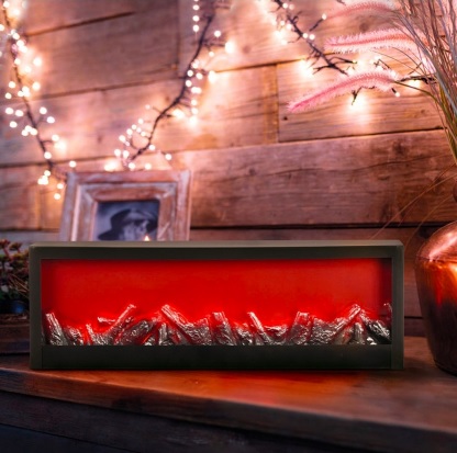 Светодиодный камин «Хайтек» создаст неповторимую атмосферу уюта и тепла. Имитация достигается благодаря трем светодиодам, подсвечивающим композицию в виде обугленных поленьев. Фасад с серебрением выполнен с эффектом состаренной поверхности. На корпусе расположен удобный перекидной выключатель. Камин питается от 3 батареек тип С или через адаптер питания и USB-кабель. Светодиоды не нагреваются и экономно расходуют заряд элементов питания. Динамическое свечение обеспечивает эффект живого, плавно двигающегося огня и натуральный вид раскаленных углей.