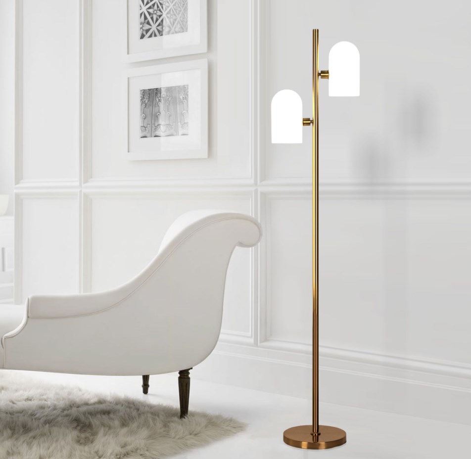 Напольный светильник со стеклянными плафонами - это стильный элемент светового дизайна в современных и классических интерьерах. Эффектный, выразительный, современный торшер со сменной лампой E14 поможет создать качественное дополнительное освещение на площади 4 м² и станет изящным украшением вашей спальни или гостиной. Благодаря молочным стеклянным плафонам напольный светильник создает мягкое рассеянное свечение. Прочный металлический корпус светильника устойчив к механическим воздействиям, а защитное покрытие обеспечивает надежную электроизоляцию и презентабельный внешний вид.