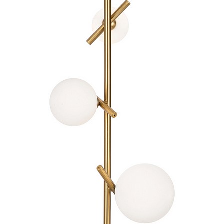 Материал арматуры — рифленый металл, цвет — латунь. Плафоны-сферы из белого матового стекла для мягкого заливающего света. Воздушный образ плафонов, строгие тонкие линии арматуры придадут интерьеру изящество и легкость. Высота подвесов регулируется. Источник света — лампы с цоколем G9.
