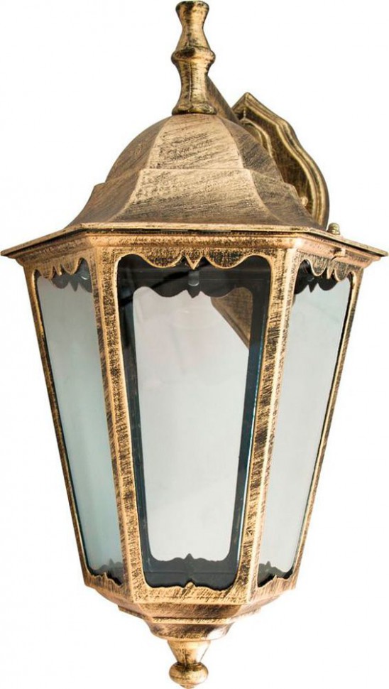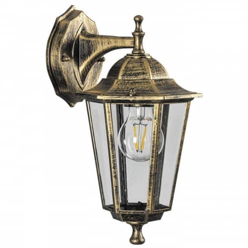 Светильник садово-парковый, серии «Классика», (НБУ) FERON 6202/PL6202 1*100W, E27, 230V, IP44, цвет черное золото, 6-и гранник, на стену вниз, 255*195*400мм.