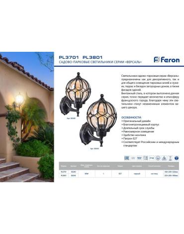 Уличный светильник Feron PL3701 черный IP44 60W E27