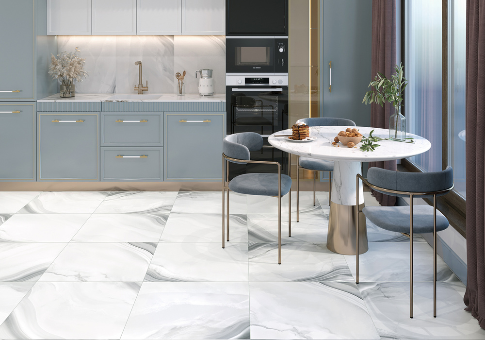 Керамогранит имеет размеры 57x57 см, толщину: 9 мм. Глянцевая поверхность имеет рисунок под камень. Этот напольный керамогранит отлично подойдет для ванной, кухни, туалета, коридора, гостиной и других помещений. Лаппатированная поверхность имеет матовые и полированные участки. Такая плитка выглядит очень привлекательно, но необходимо иметь в виду, что при попадании на нее воды, она будет более скользкой, чем плитка с натуральной, необработанной поверхностью. Керамогранит Sentido Лаппатированная входит в коллекцию Sentido производителя Alma Ceramica (Россия).
